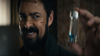 В штаб-квартире Хоумлендер показывает чемодан с останками, главе Vought Стиллвелл с надписью "Мы до вас доберемся".